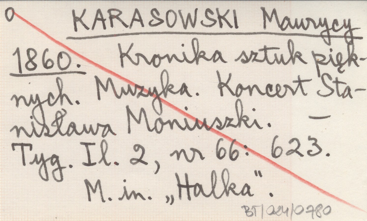 KARASOWSKI Maurycy 1860 Kronika sztuk pięknych. Muzyka. Koncert Stanisława Moniuszki.