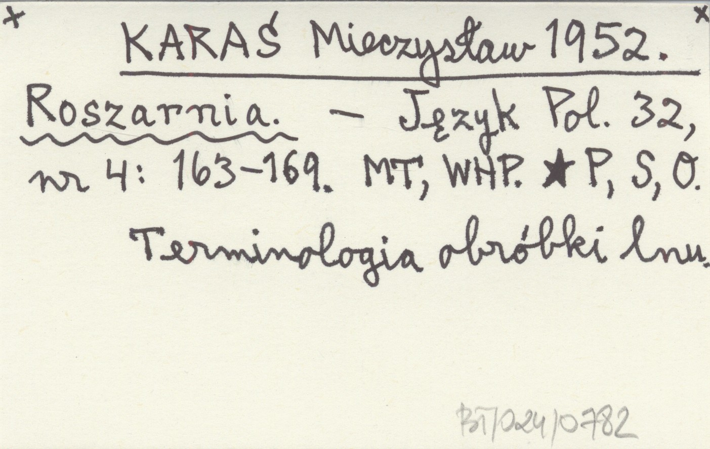 Język Polski, 32, nr 4: 163-169. Terminologia obróbki lnu.