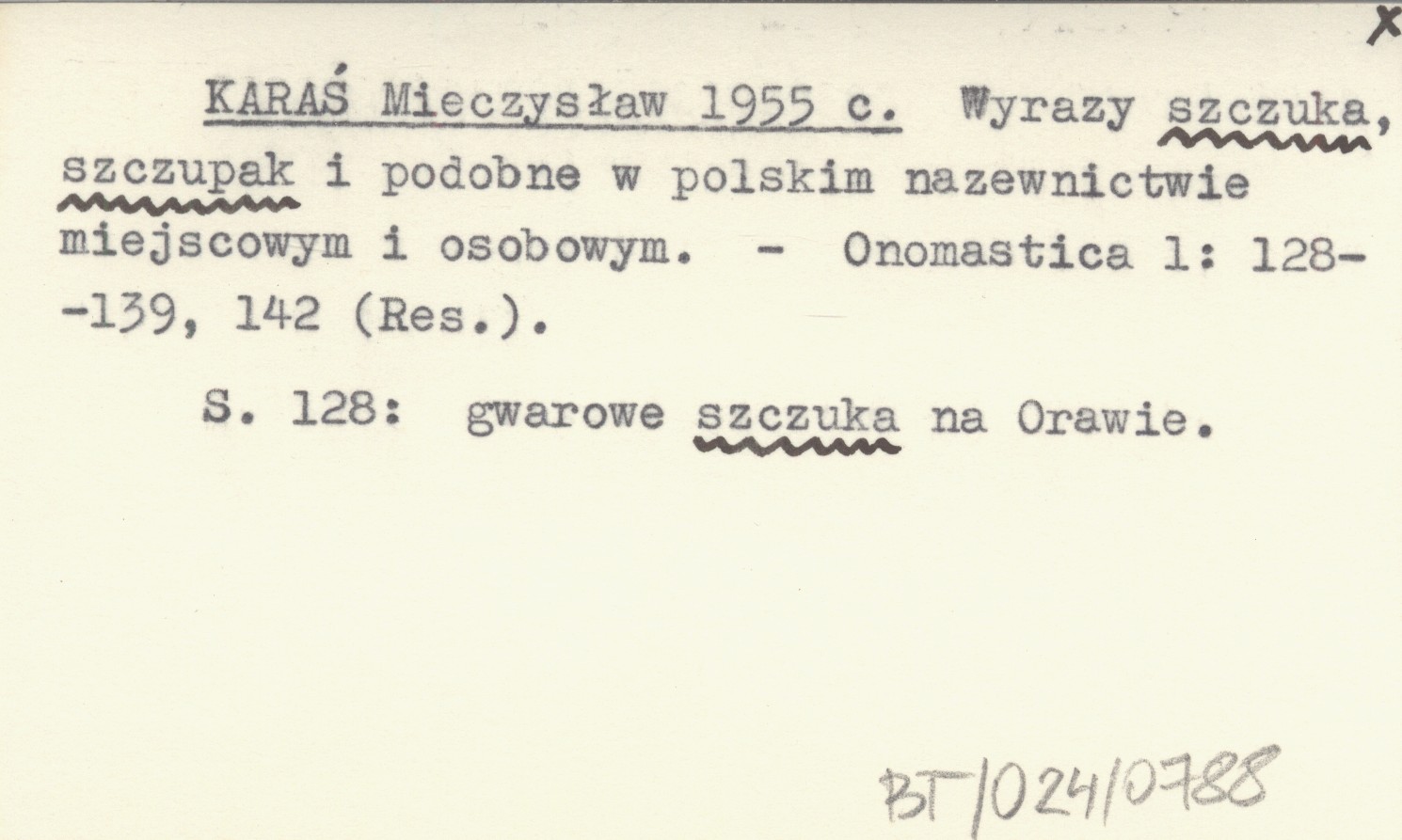 Onomastica, 1: 128-139, 142 (Res.). S. 128: gwarowe szczuka na Orawie.