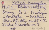 KARAŚ Mieczysław 1965 a Polskie dialekty Orawy. Cz. I: Fonologia i fonetyka.