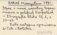 KARAŚ Mieczysław 1971... Stare i nowe warstwy toponimiczne w polskich Karpatach.