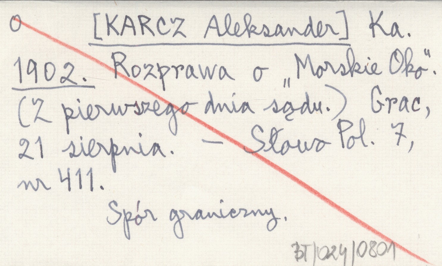 Ka. [KARCZ Aleksander] 1902 Rozprawa o "Morskie Oko". (Z pierwszego dnia sądu). Grac, 21 sierpnia.