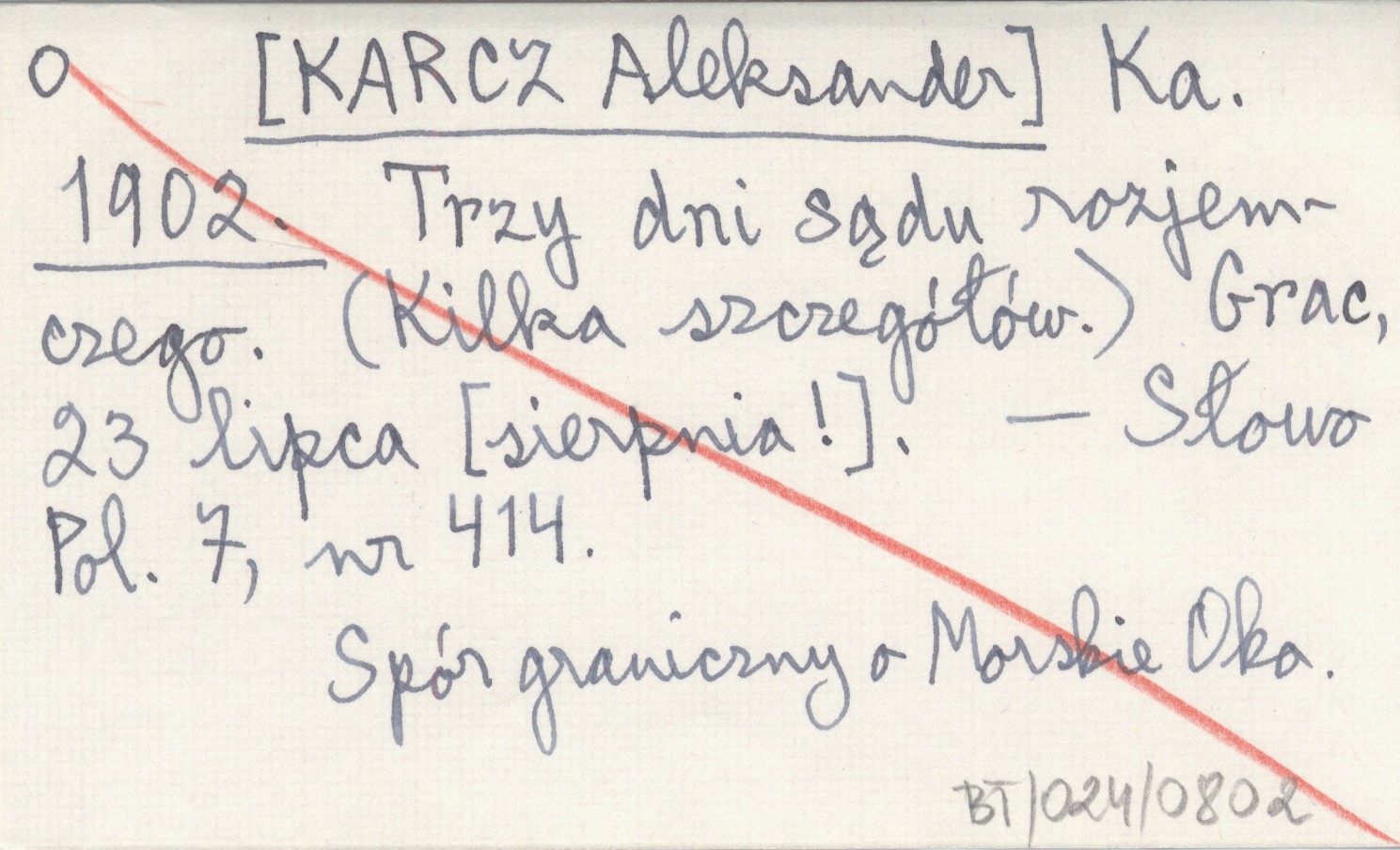 Ka. [KARCZ Aleksander] 1902 Trzy dni sądu rozjemczego. (Kilka szczegółów). Grac, 23 lipca [sierpnia!].