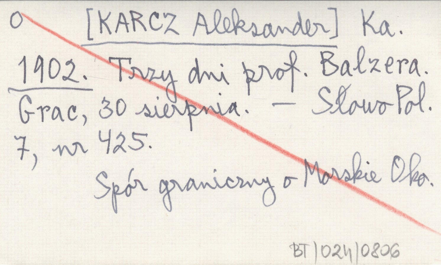 Ka. [KARCZ Aleksander] 1902 Trzy dni prof. Balzera. Grac, 30 sierpnia.