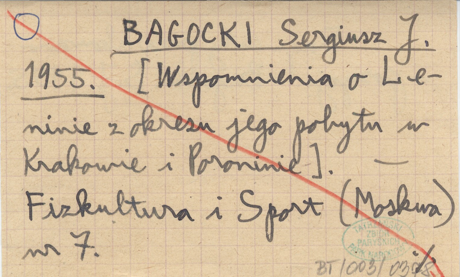 BAGOCKI Sergiusz J. 1955 [Wspomnienia o Leninie z okresu jego pobytu w Krakowie i Poroninie.]