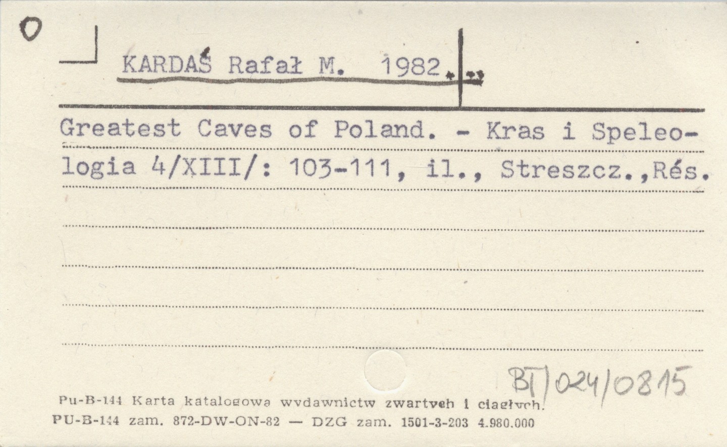 Kras i Speleologia, 4/XIII/: 103-111, il., streszcz., Rés.
