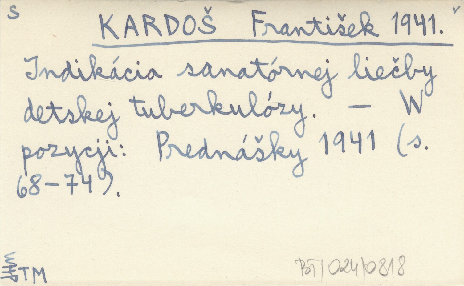 KARDOŠ František 1941 Indikácia senatórnej liečby detskej tuberkulózy.