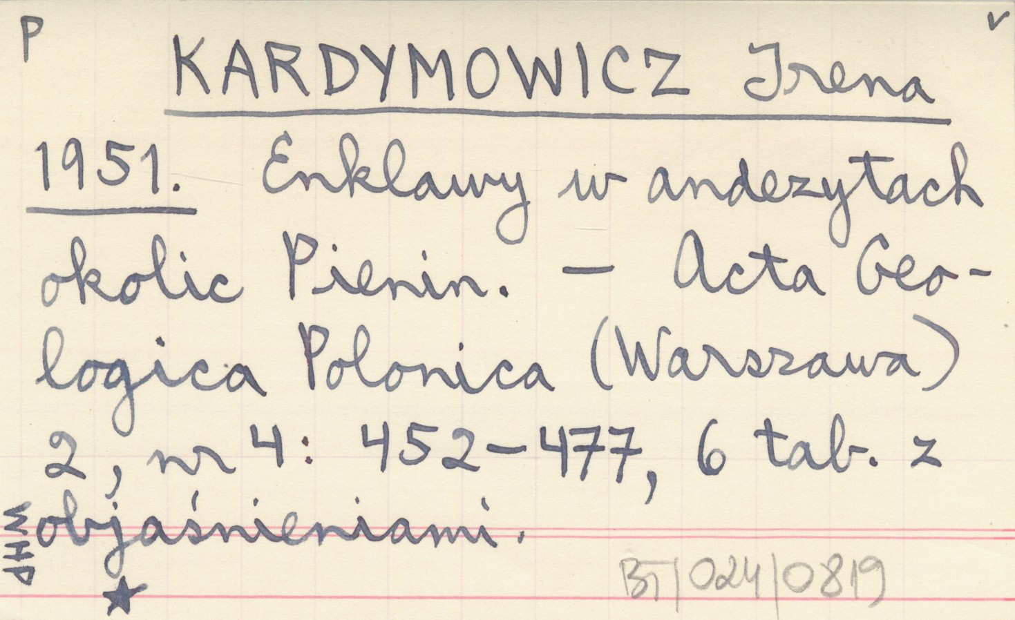 KARDYMOWICZ Irena 1951 Enklawy w andezytach okolic Pienin.
