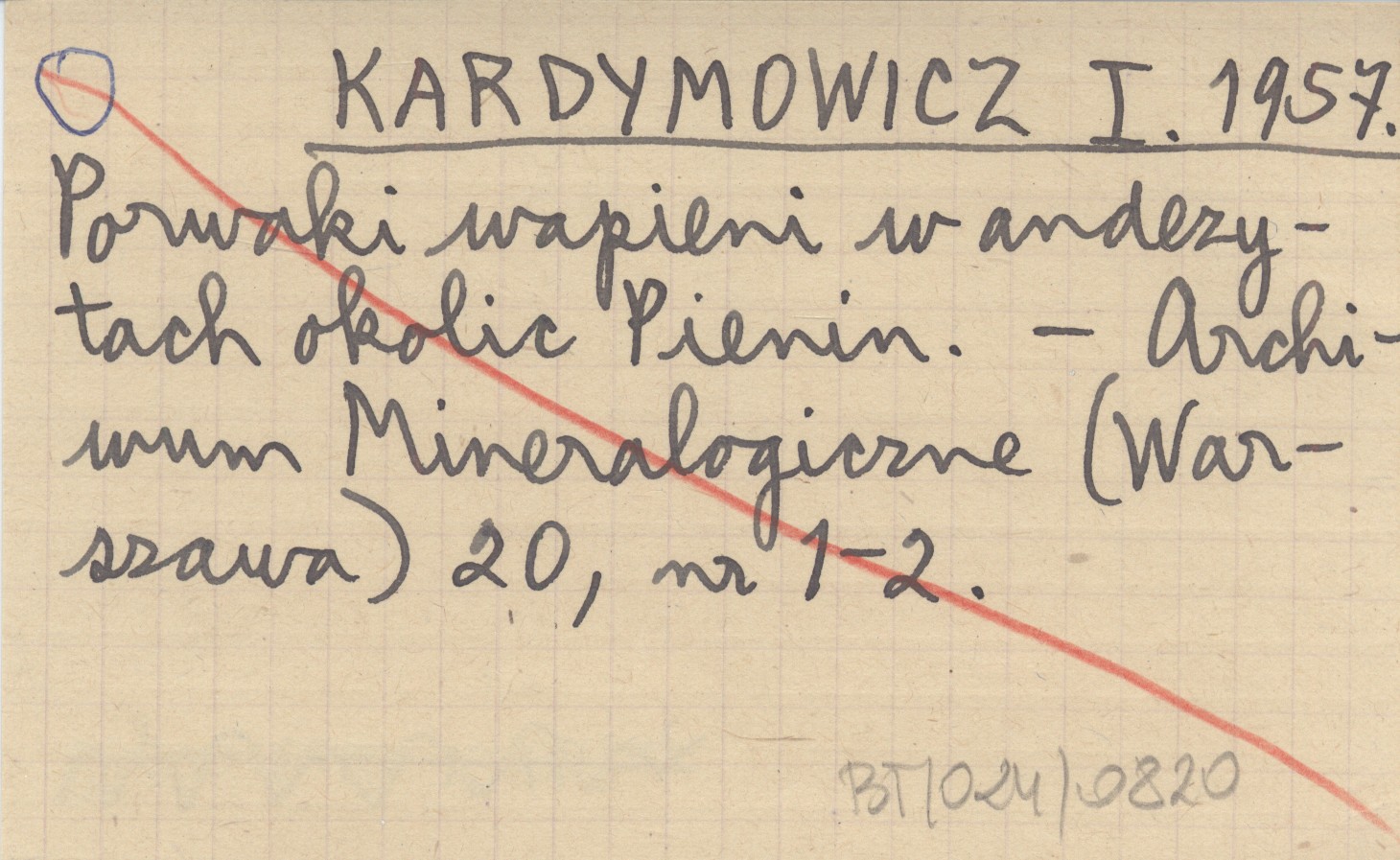 KARDYMOWICZ I. 1957 Porwaki wapieni w andezytach okolic Pienin.