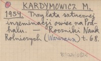 KARDYMOWICZ M. 1954 Trzy lata sztucznej inseminacji owiec na Podhalu.