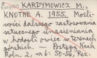 KARDYMOWICZ M. KNOTHE, A. ; 1955 Możliwości dalszego zastosowania sztucznego unasieniania w hodowli owiec w terenach górskich.