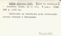 KAREL Andrzej 1922 [List do redakcji].