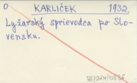KARLIÈEK 1932 Ly¾arský sprievodca po Slovensku.