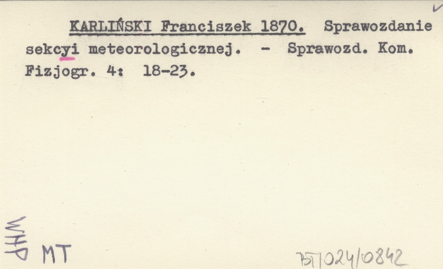 KARLIŃSKI Franciszek 1870 Sprawozdanie sekcyi meteorologicznej.