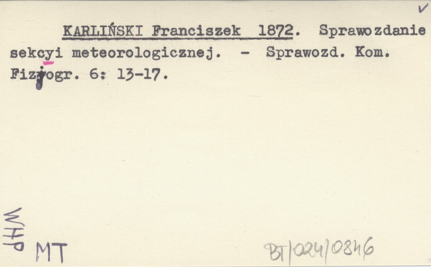 KARLIŃSKI Franciszek 1872 Sprawozdawanie sekcyi meteorologicznej.