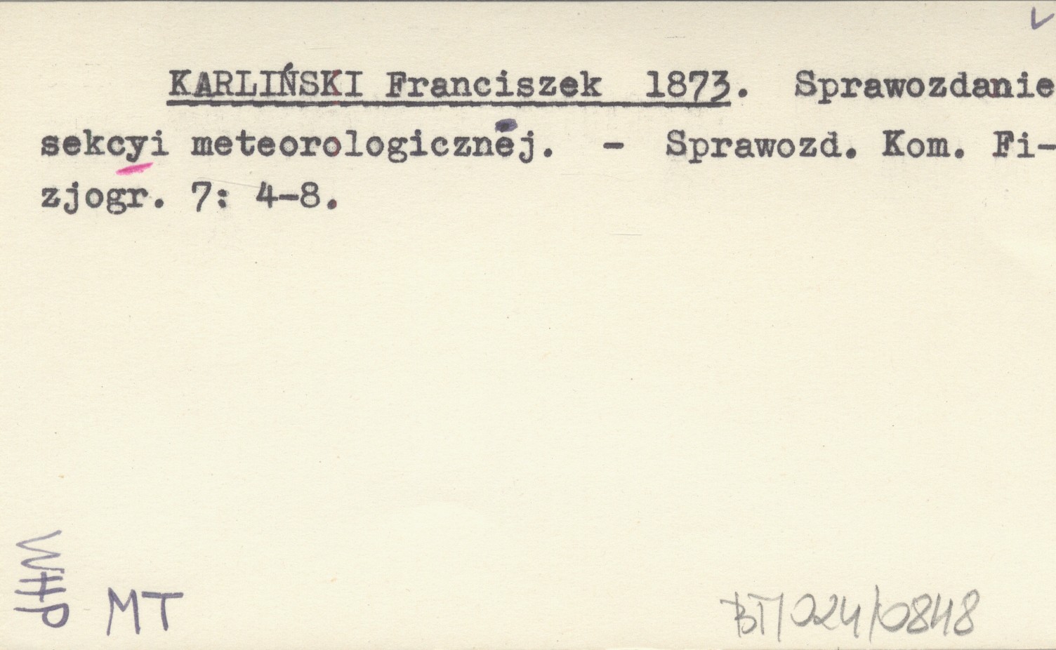 KARLIŃSKI Franciszek 1873 Sprawozdanie sekcyi meteorologicznej.
