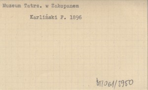 Projekt Digitalizacja fiszek z Bibliografią Tatr i Podtatrza Witolda Henryka Paryskiego jest finansowany ze środków Ministra Kultury i Dziedzictwa Narodowego oraz Tatrzańskiego Parku Narodowego.