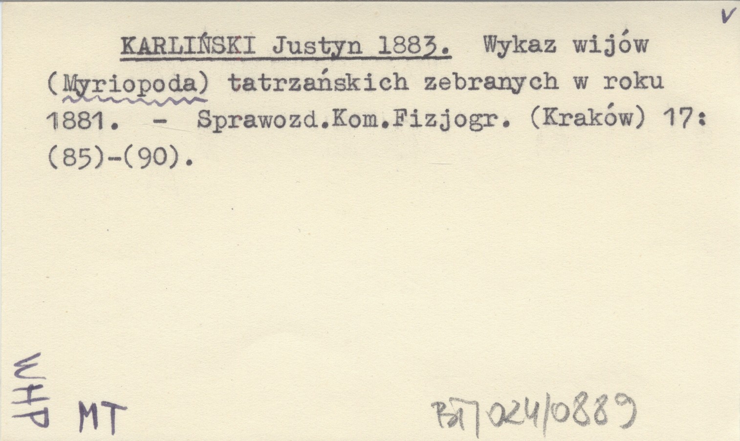 KARLIŃSKI Justyn 1883 Wykaz wijów (Myriopoda) tatrzańskich zebranych w roku 1881.
