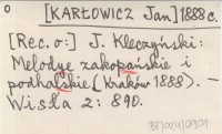 [KARŁOWICZ Jan] 1888 c J. Kleczyński: Melodye zakopańskie i podhalskie (Kraków 1888).