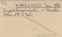 KARŁOWICZ Jan 1892 Izydor Kopernicki.