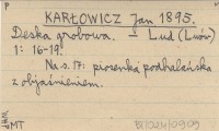 KARŁOWICZ Jan 1895 Deska grobowa.