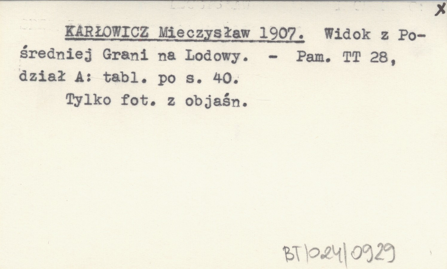 KARŁOWICZ Mieczysław 1907 Widok z Pośredniej Grani na Lodowy.