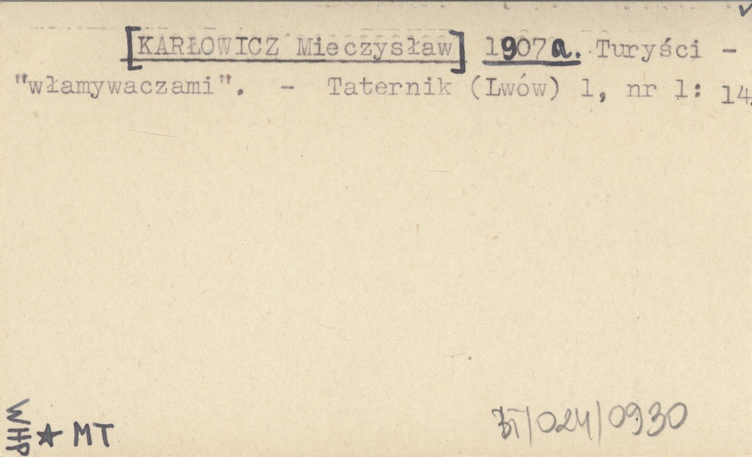 [KARŁOWICZ Mieczysław] 1907 a Turyści - "włamywaczami".