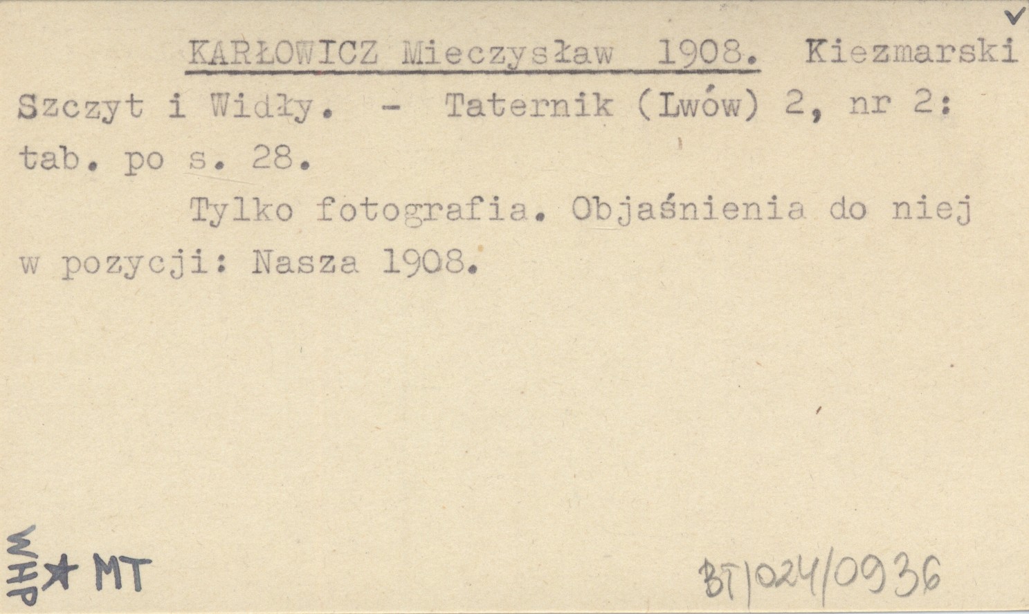 KARŁOWICZ Mieczysław 1908 Kiezmarski Szczyt i Widły.