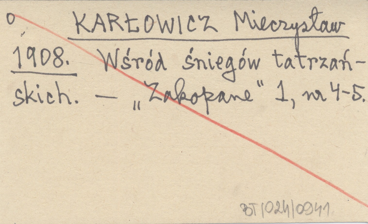 KARŁOWICZ Mieczysław 1908 Wśród śniegów tatrzańskich.