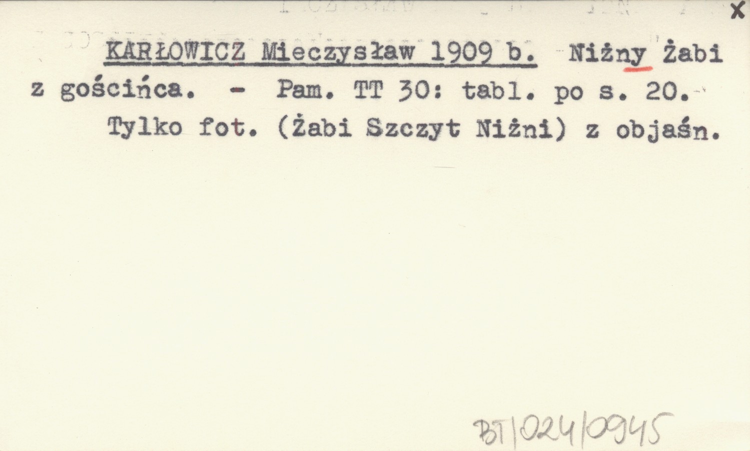 KARŁOWICZ Mieczysław 1909 b Niźny Żabi z gościńca.