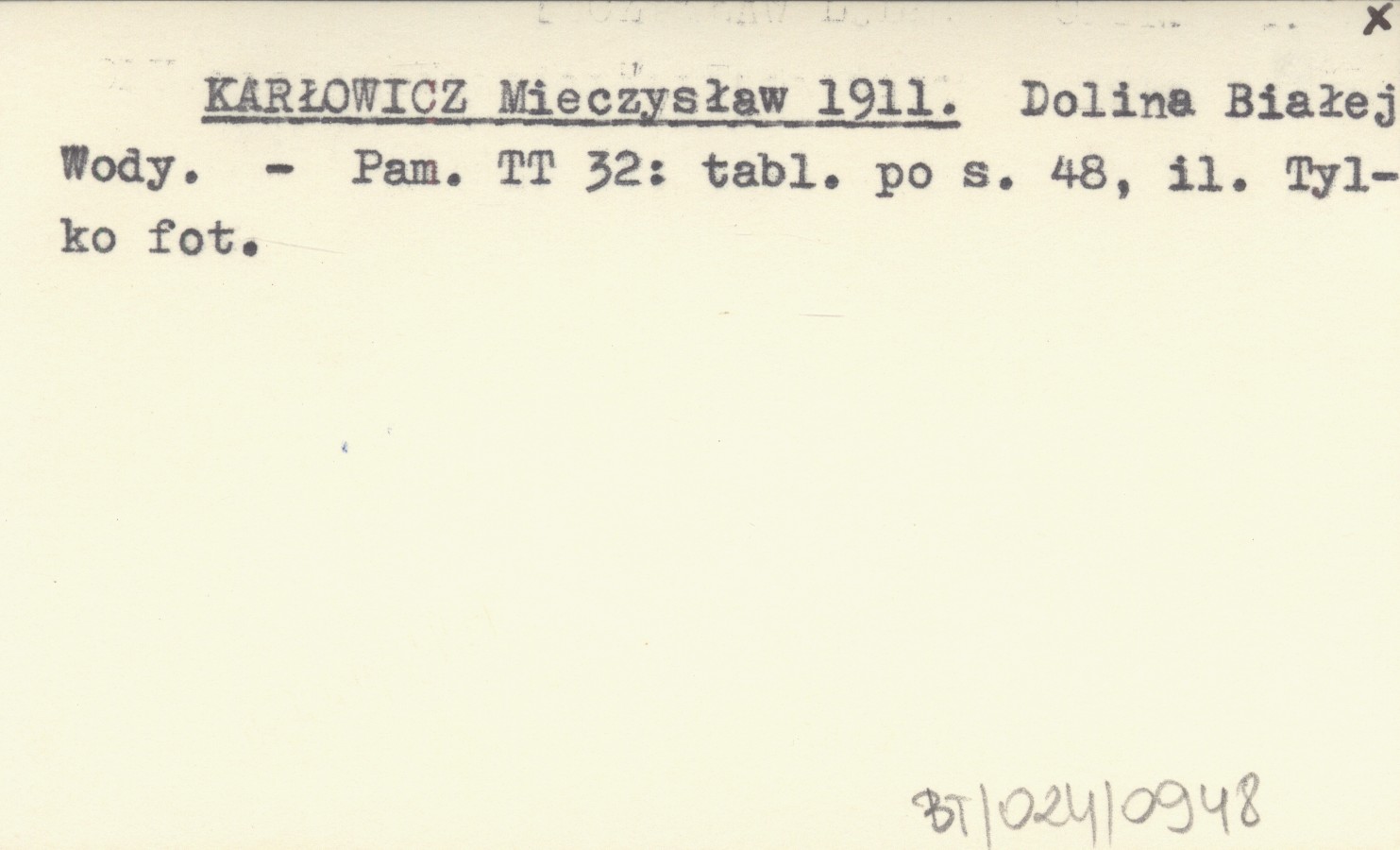 Pamiętnik Towarzystwa Tatrzańskiego, 32: 1 k. po s. 48, il. Tylko fotografia.