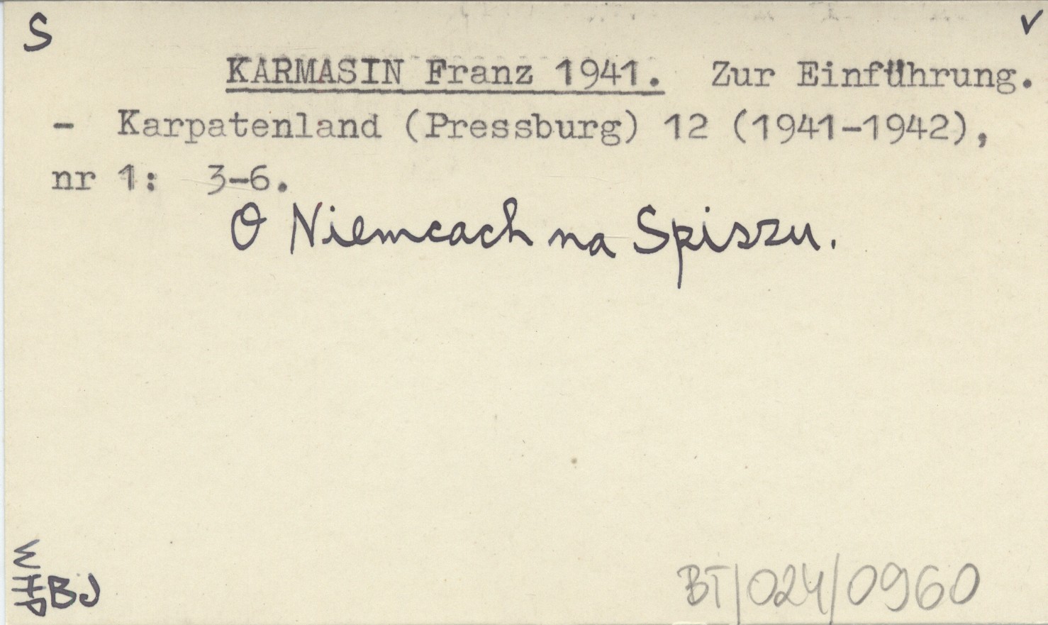 Karpatenland (Pressburg) , 12 (1941-1942), nr 1: 3-6. O Niemcach na Spiszu.