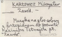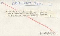 KARŁOWICZ Mieczysław Zawód.