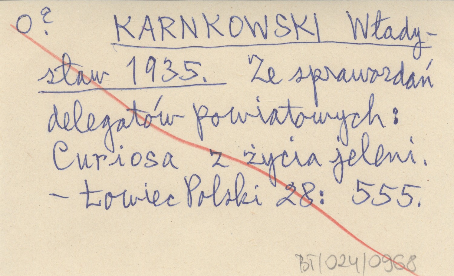 KARNKOWSKI Władysław 1935 Ze sprawozdań delegatów powiatowych: Curiosa z życia jeleni.