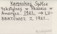 Karpackiej Spółce tekstylnej w Passaic w Ameryce. 1921