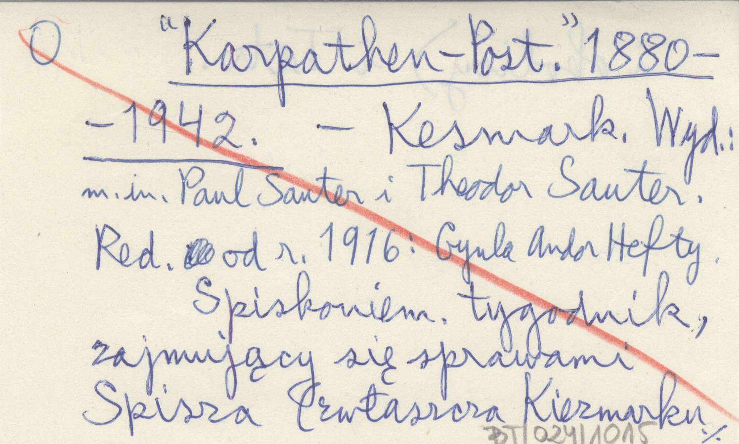 Kesmark , Spiskoniemiecki tygodnik, zajmujący się sprawami Spisza (zwłaszcza Kiezmarku i okolicy) i Tatr. Wyd.: m. in. Paul Sauter i Theodor Sauter. Red. od r. 1916: Gyula Andor Hefty.