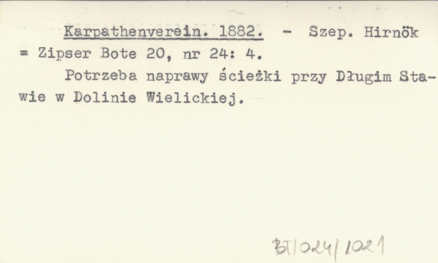 Szepesi Hirnök = Zipser Bote, 20, nr 24: 4. Potrzeba naprawy ścieżki przy Długim Stawie w Dolinie Wielickiej.