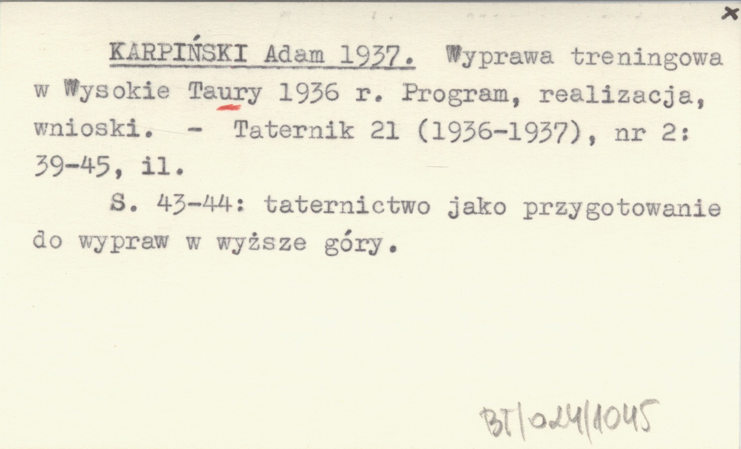 KARPIŃSKI Adam 1937 Wyprawa treningowa w Wysokie Taury 1936 r. Program, realizacja, wnioski.