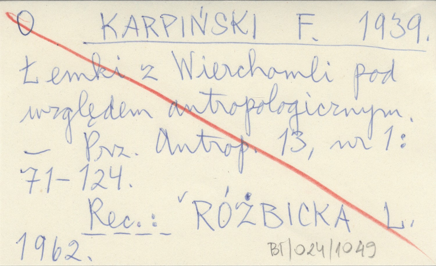 KARPIŃSKI F. 1939 Łemki z Wierchomli pod względem antropologicznym.