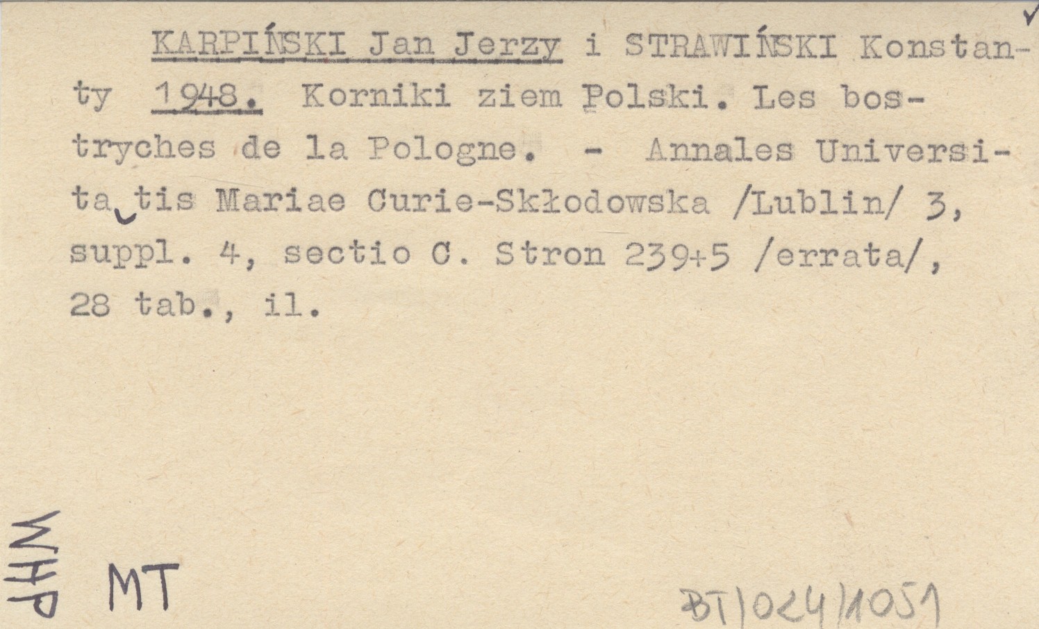 KARPIŃSKI Jan Jerzy STRAWIŃSKI, Konstanty. ; 1948 Korniki ziem Polski. Les bostryches de la Pologne.