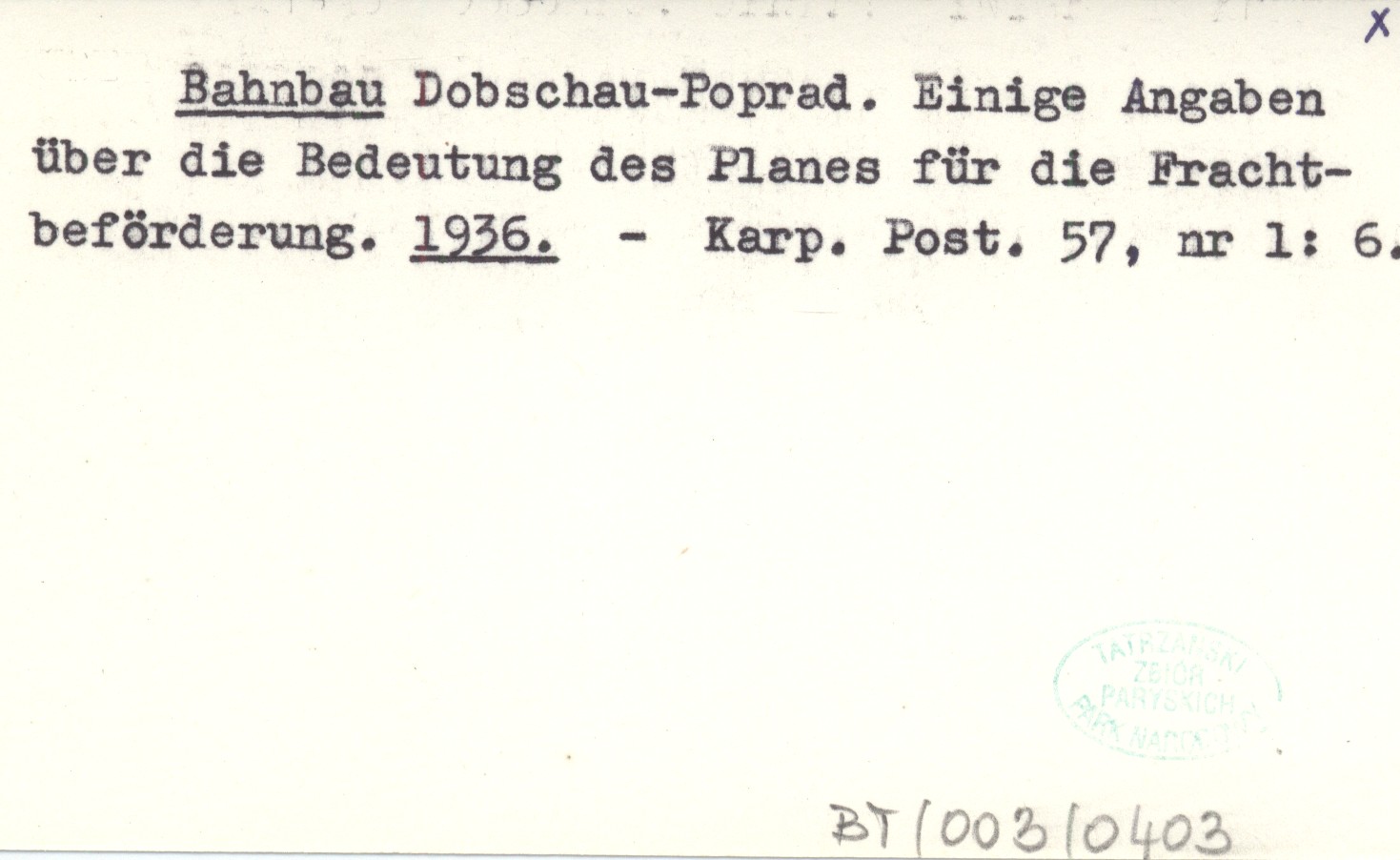 Bahnbau Dobschau-Poprad. Einige Angaben über die Bedeutung des Planes für die Frachtbeförderung. 1936