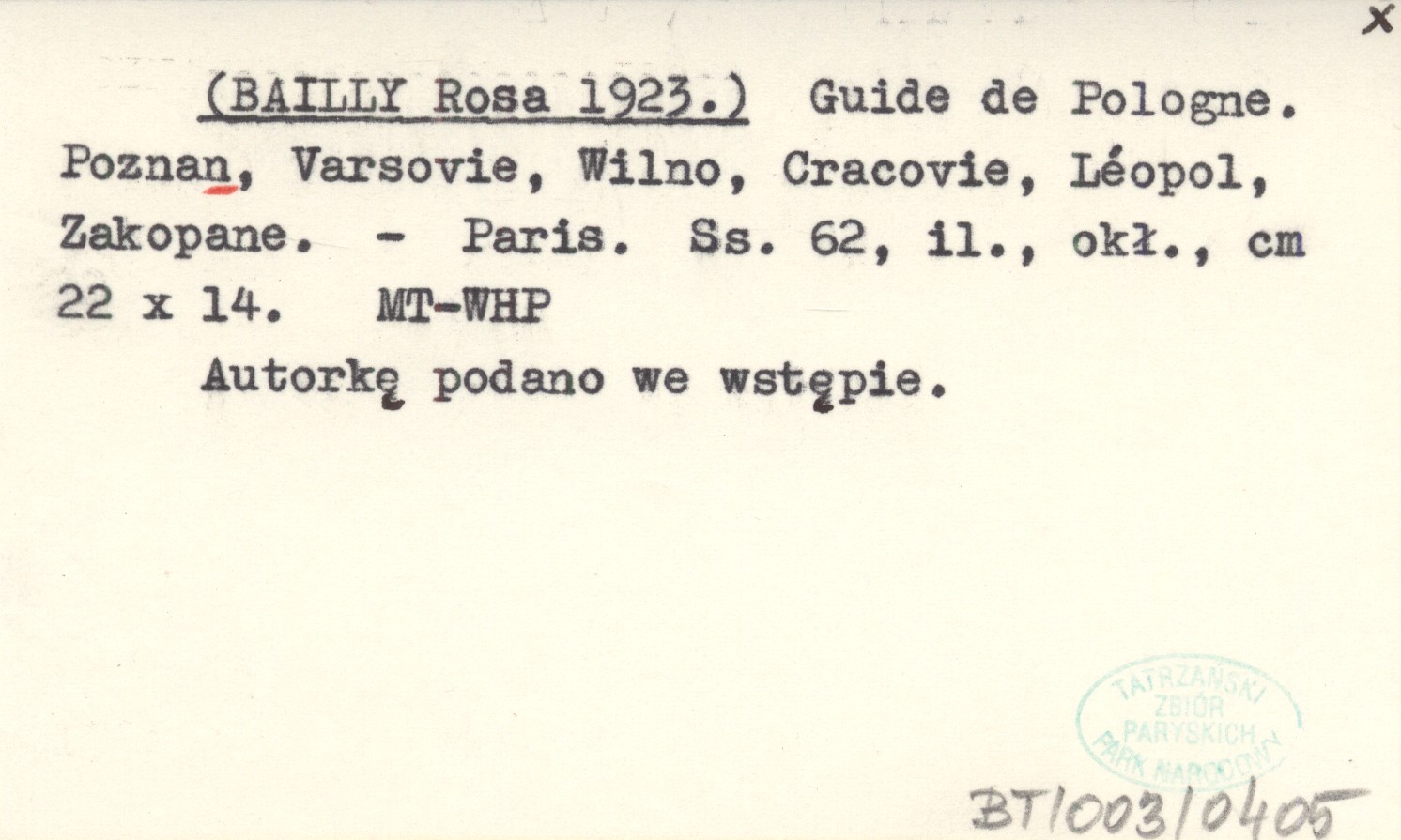 Paris , 62 s., il., okł., 22x14 cm. Autorkę podano we wstępie.