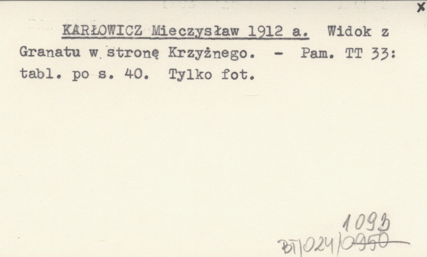 KARŁOWICZ Mieczysław 1912 a Widok z Granatu w stronę Krzyżnego.