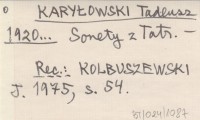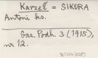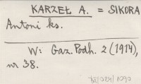 KARZEŁ A. SIKORA Antoni ks. Gazeta Podhalańska 2 (1914), nr 38.