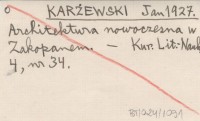 KARŻEWSKI Jan 1927 Architektura nowoczesna w Zakopanem.
