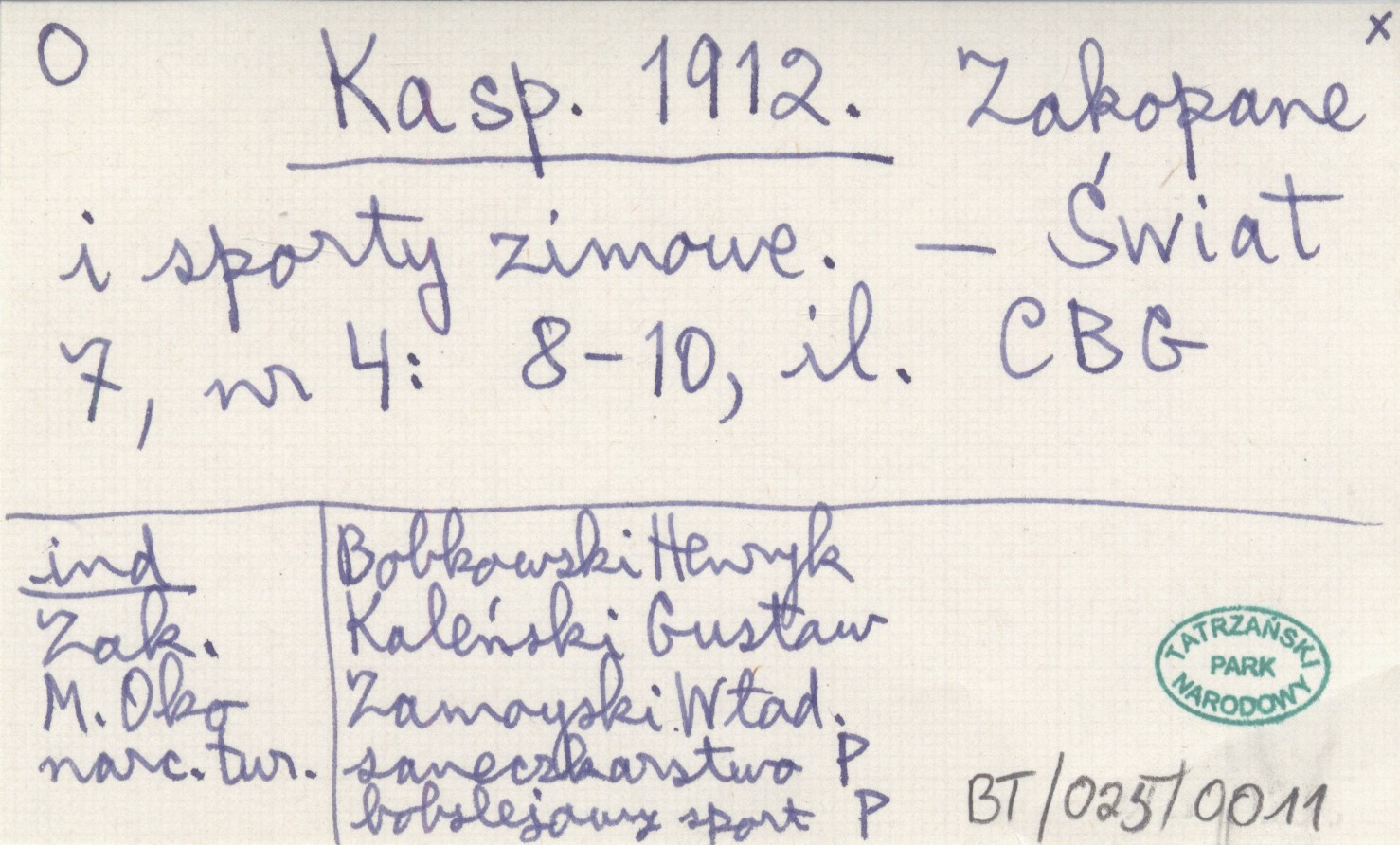 Projekt Digitalizacja fiszek z Bibliografią Tatr i Podtatrza Witolda Henryka Paryskiego jest finansowany ze środków Ministra Kultury i Dziedzictwa Narodowego oraz Tatrzańskiego Parku Narodowego.