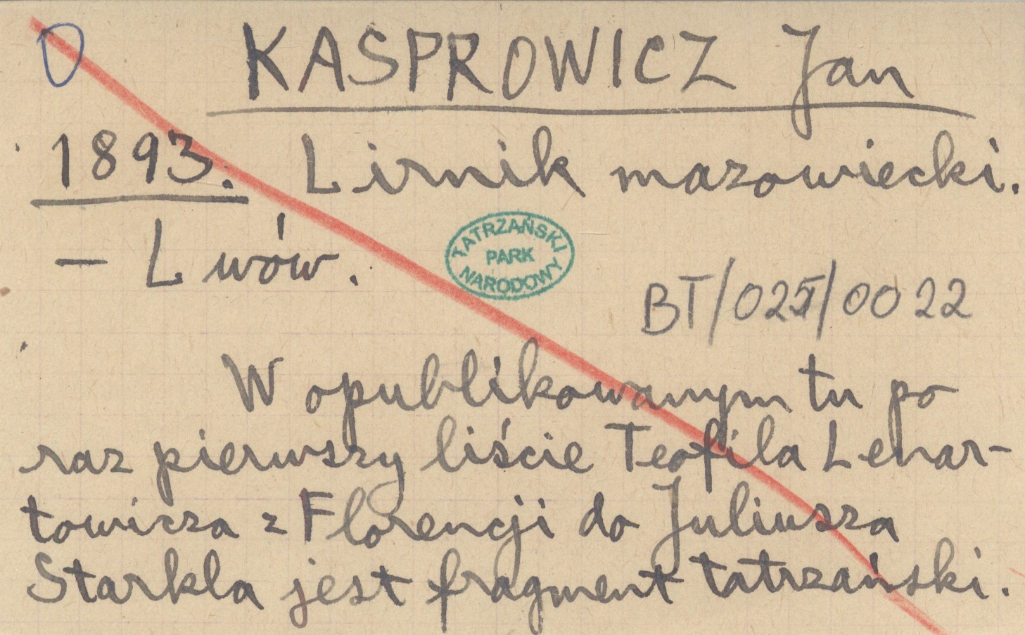 Lwów , W opublikowanym tu po raz pierwszy liście Teofila Lenartowicza z Florencji do Juliusza Starkla jest fragment tatrzański.
