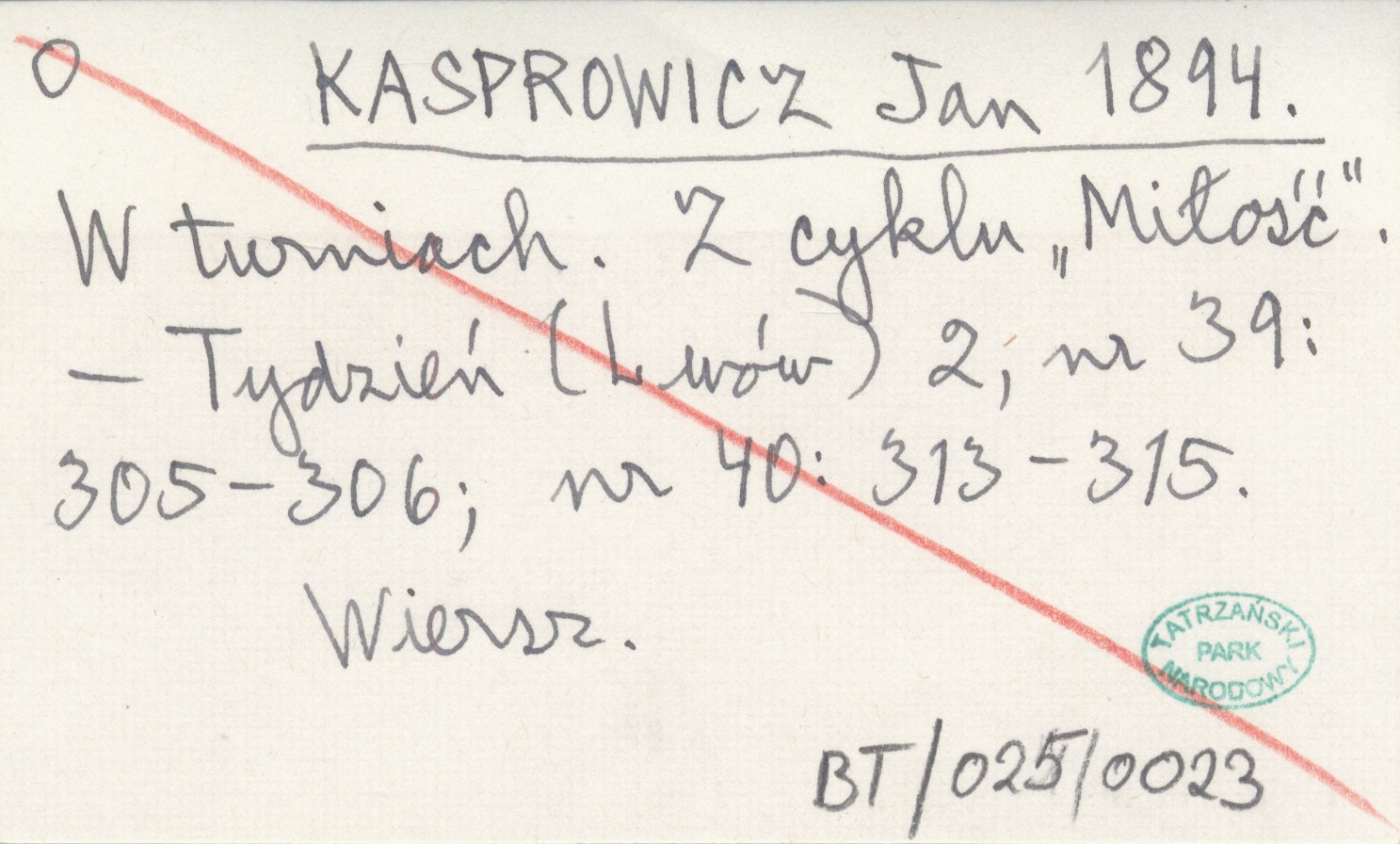 Tydzień (Lwów) , 2, nr 39: 305-306; nr 40: 313-315. Wiersz.