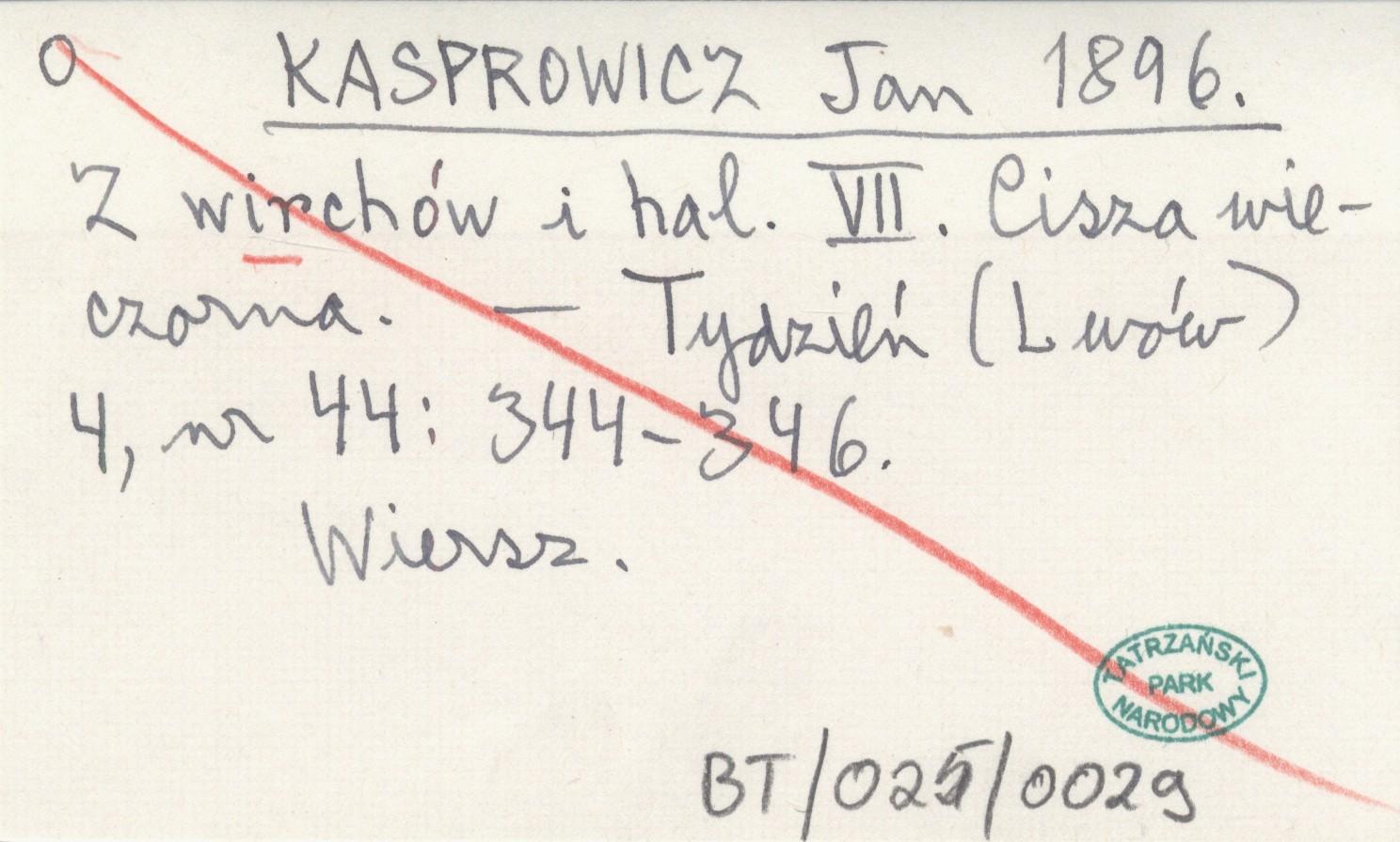 KASPROWICZ Jan 1896 Z wirchów i hal. VII. Cisza wieczorna.
