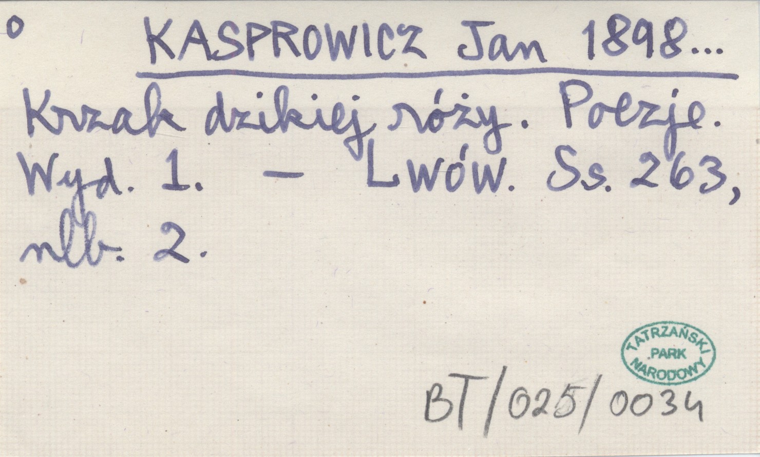KASPROWICZ Jan 1898... Krzak dzikiej róży. Poezje.